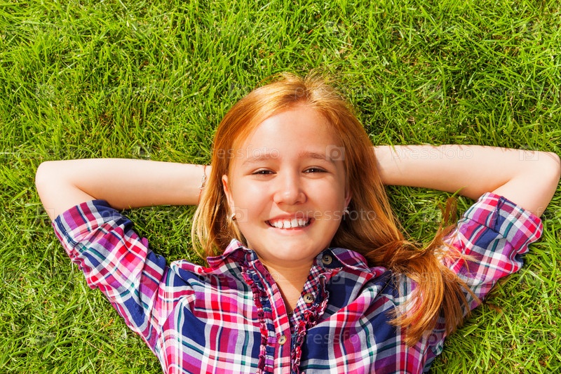 Девочка на зеленой траве