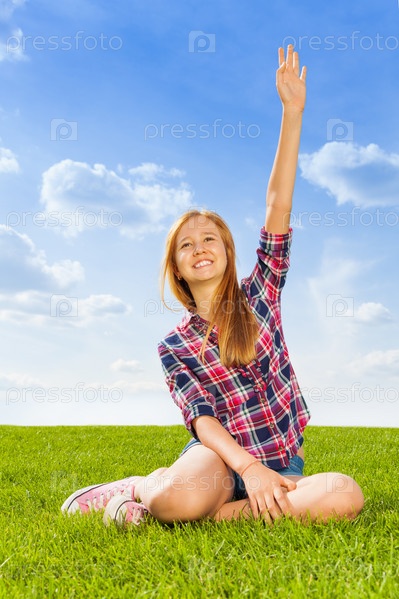 Красивая девочка сидит на траве