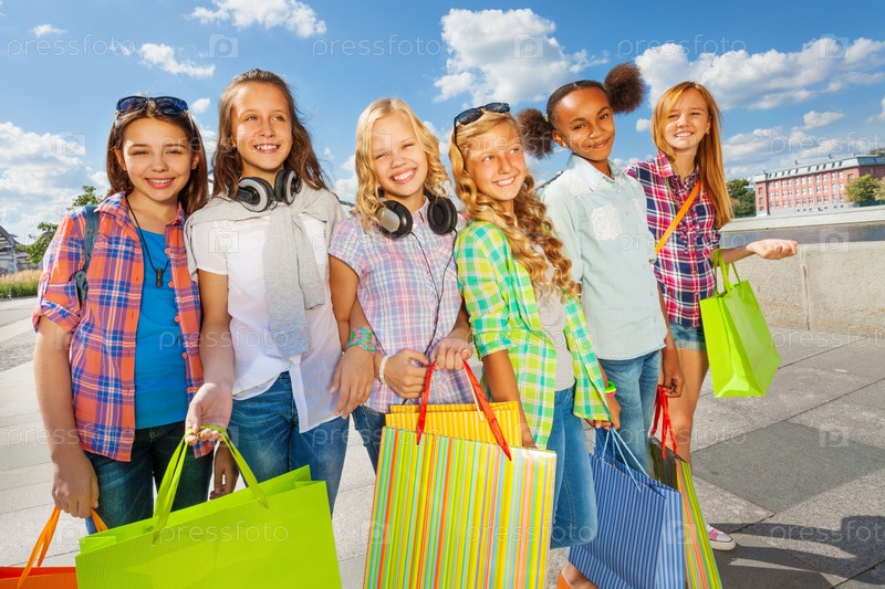 Друзья с покупками в городе