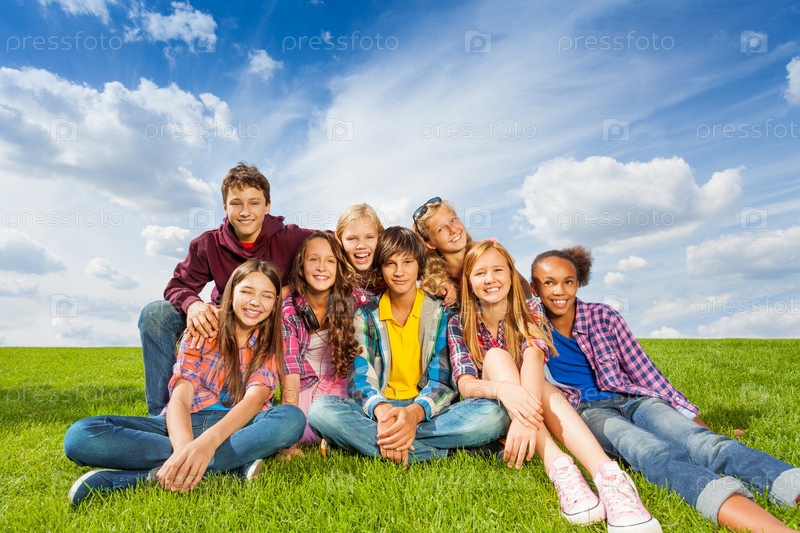Группа детей-подростков на свежем воздухе