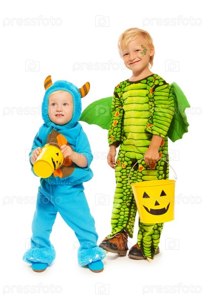 Два брата в костюмах монстров на Хэллоуин