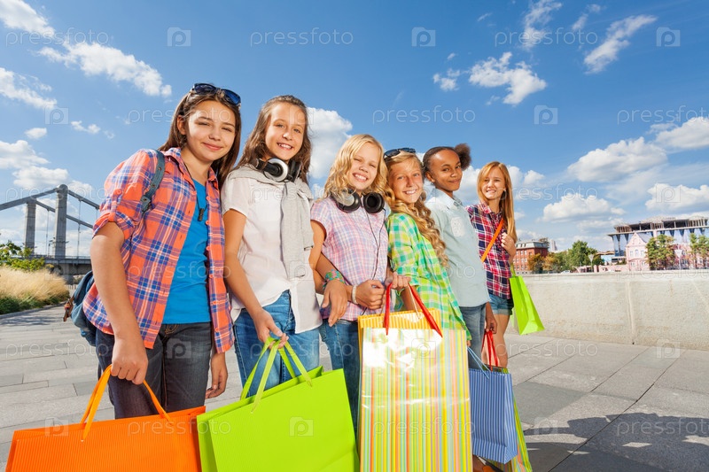 Группа девочек с покупками