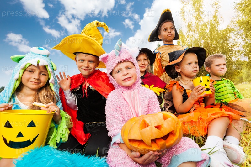Дети в костюмах для Хэллоуина