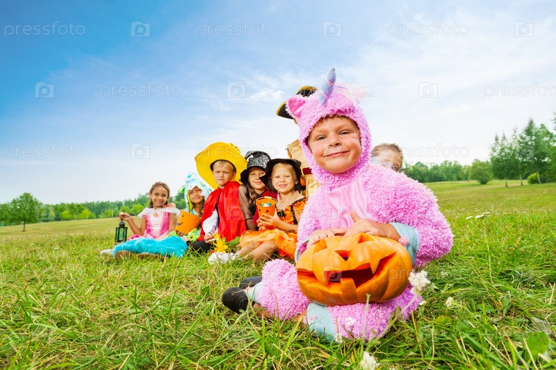 Дети в костюмах для Хэллоуина