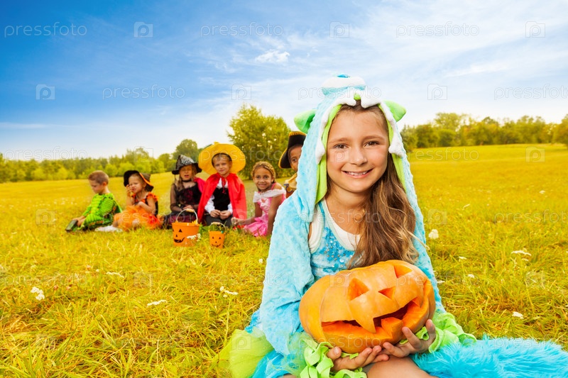 Дети в костюмах для Хэллоуина