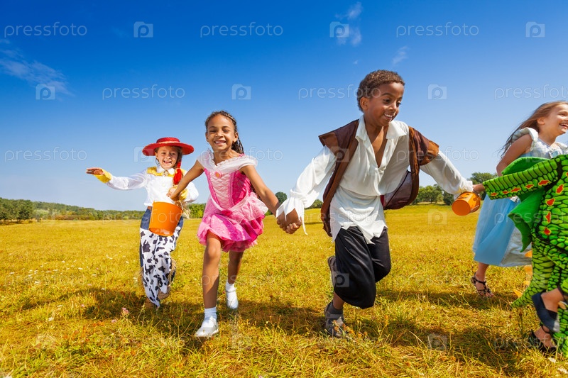 Дети в костюмах для Хэллоуина