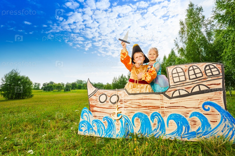 Мальчик в костюме пирата и девочка в костюме принцессы