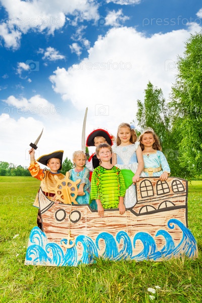 Дети в различных костюмах для Хэллоуина или карнавала
