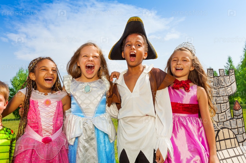 Дети в различных костюмах для Хэллоуина или карнавала