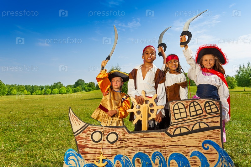Дети в различных костюмах для Хэллоуина или карнавала
