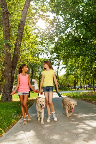 Девочки-подростки с собаками в парке