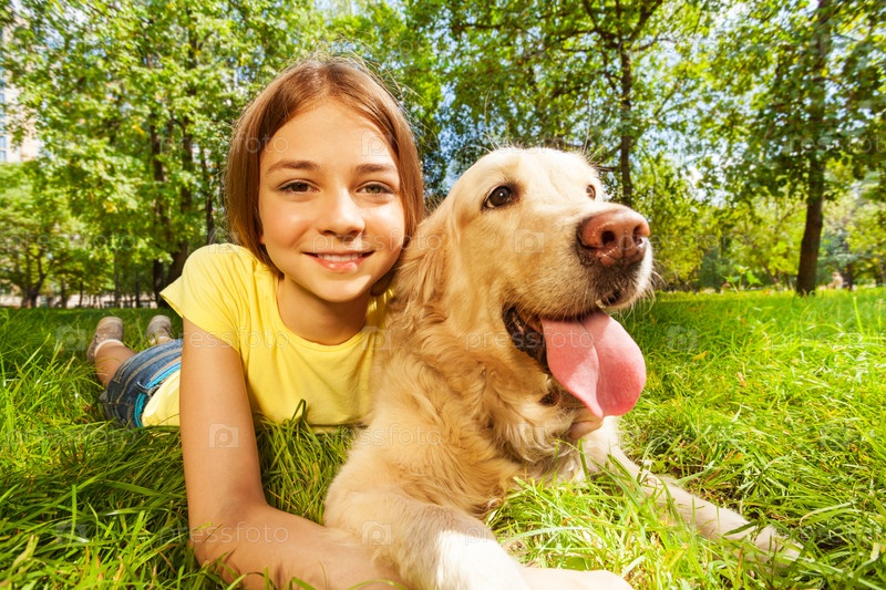 Девочка-подросток с собакой в парке