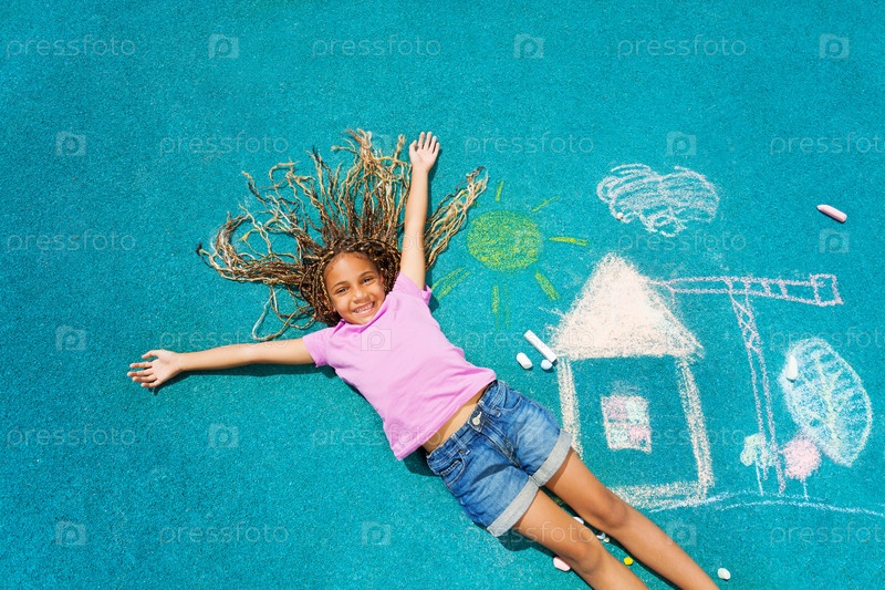 Девочка рисует мелом на асфальте