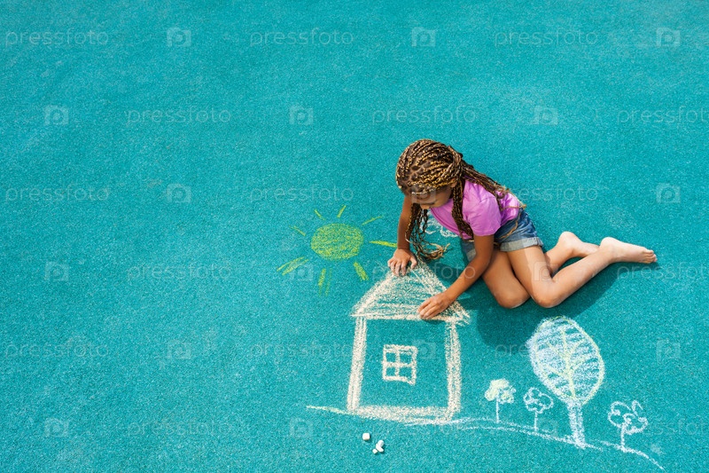 Девочка рисует мелом на асфальте