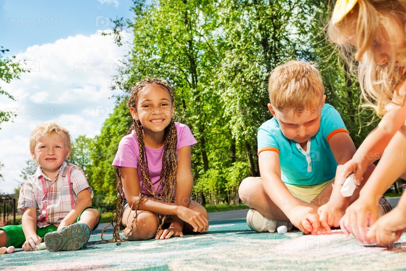Дети рисуют мелом на асфальте