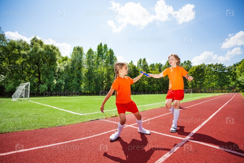 Дети на беговой дорожке на стадионе
