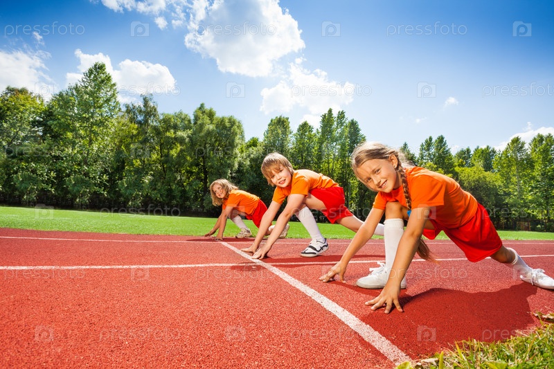 Дети на беговой дорожке на стадионе