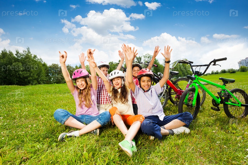 Дети катаются на велосипедах