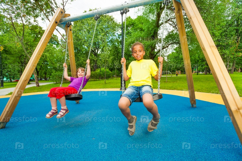 Мальчик и девочка на качелях