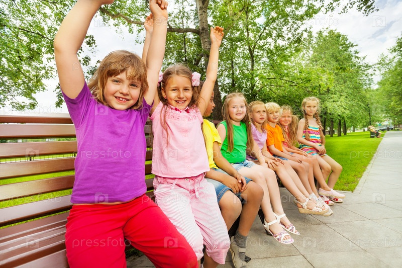 Дети на скамейке в парке