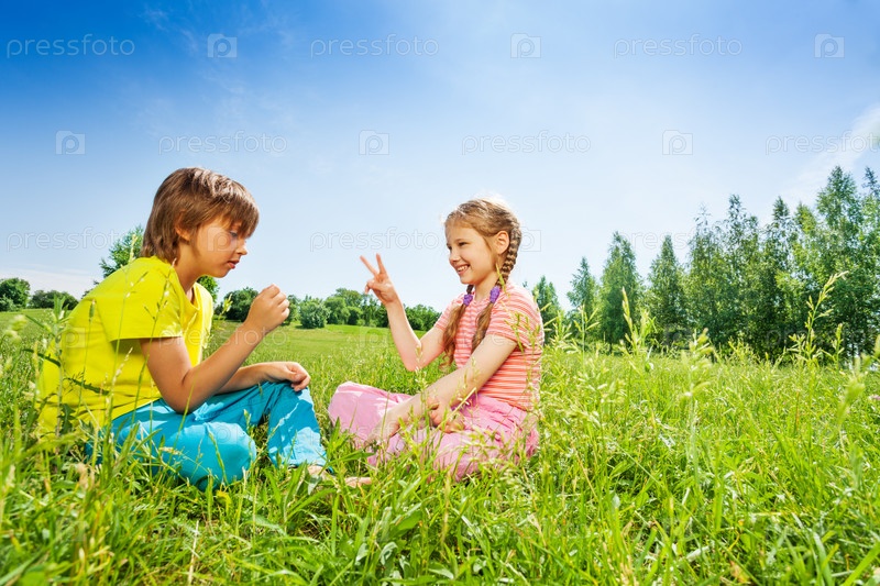 Девочка и мальчик на траве