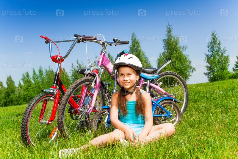 Милая маленькая девочка на велосипеде