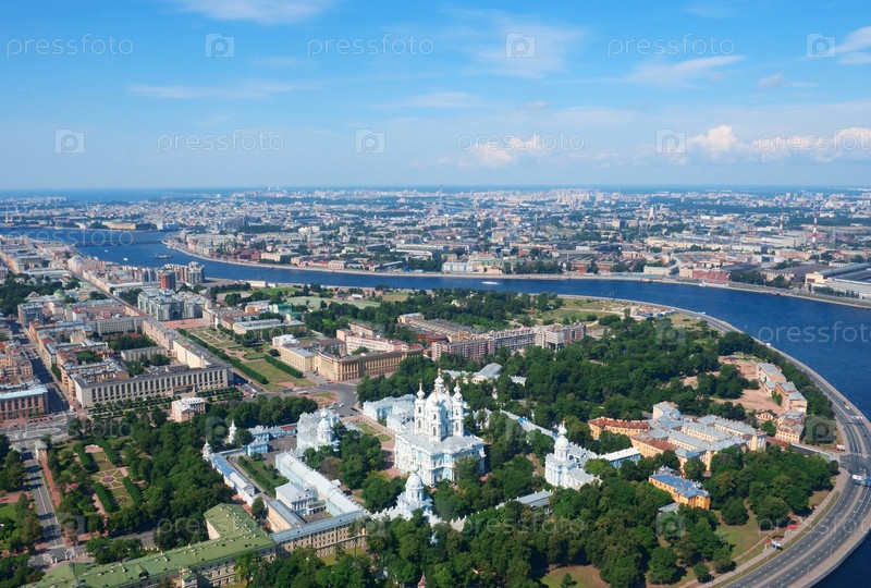 Санкт-Петербург с высоты птичьего полета: Нева и Смольный монастырь