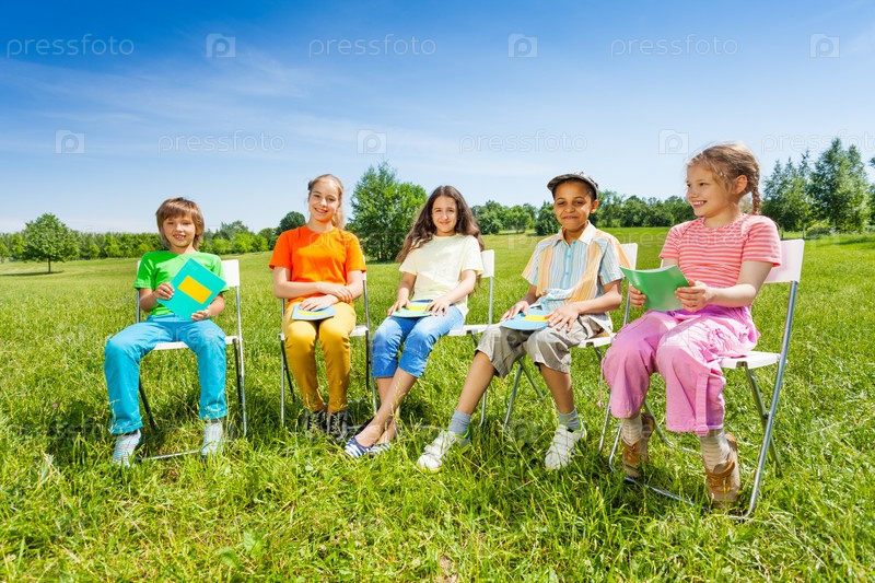 Дети с тетрадями на поляне