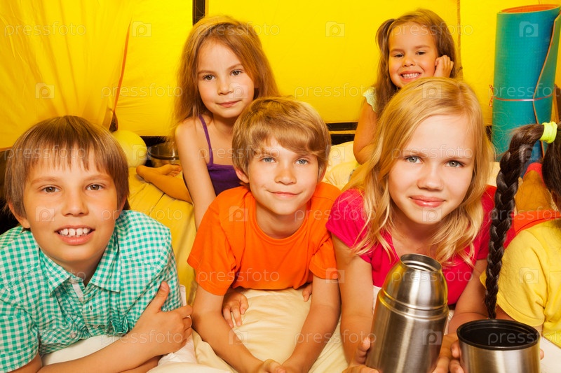 Счастливые дети в палатке