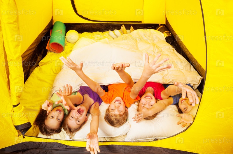 Счастливые дети в палатке