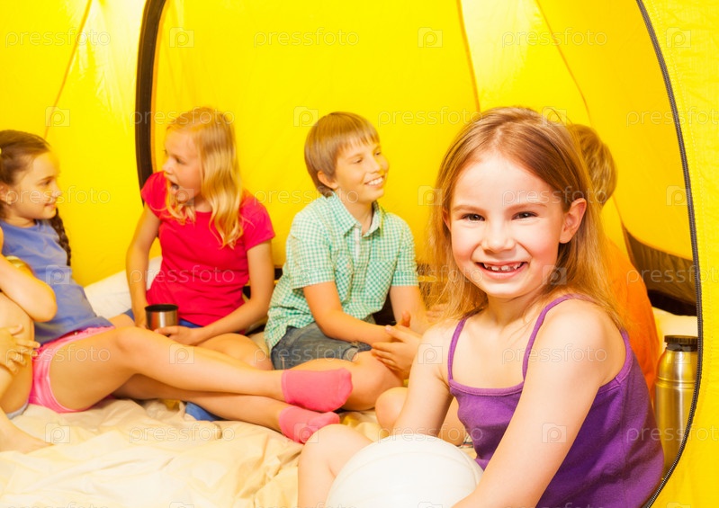 Счастливые дети в палатке