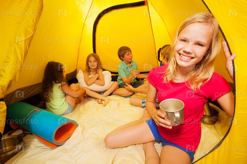Счастливые дети в палатке