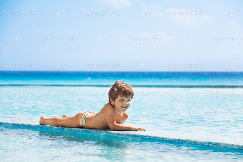 Маленький мальчик у бассейна