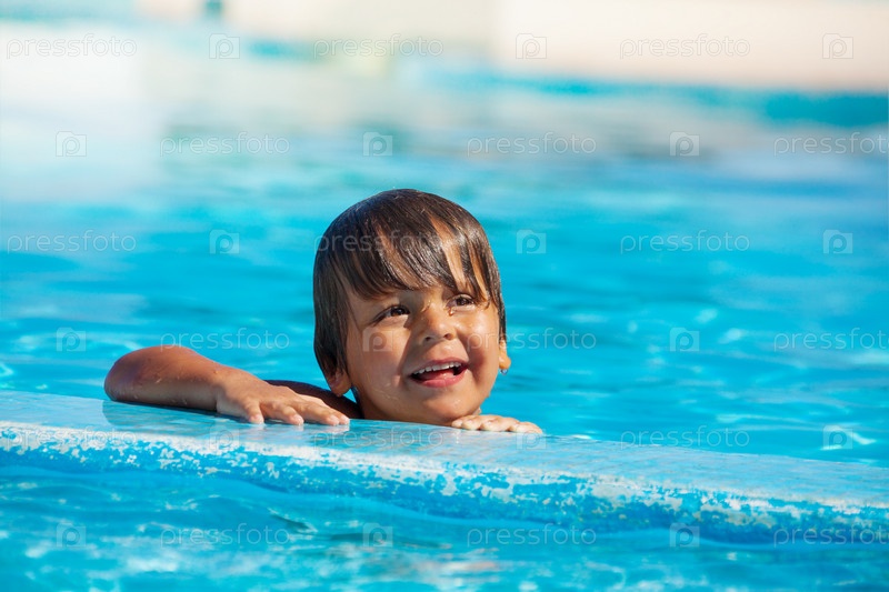 Маленький мальчик купается в бассейне