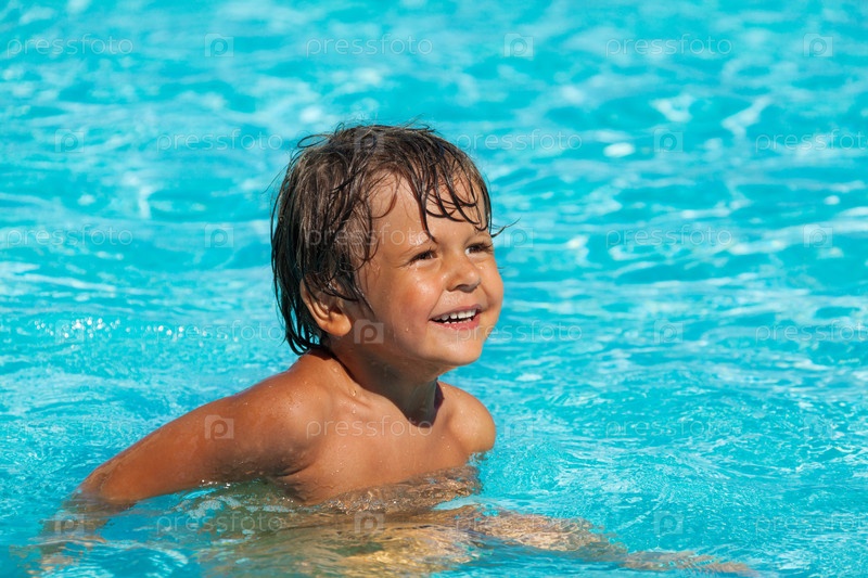 Маленький мальчик купается в бассейне