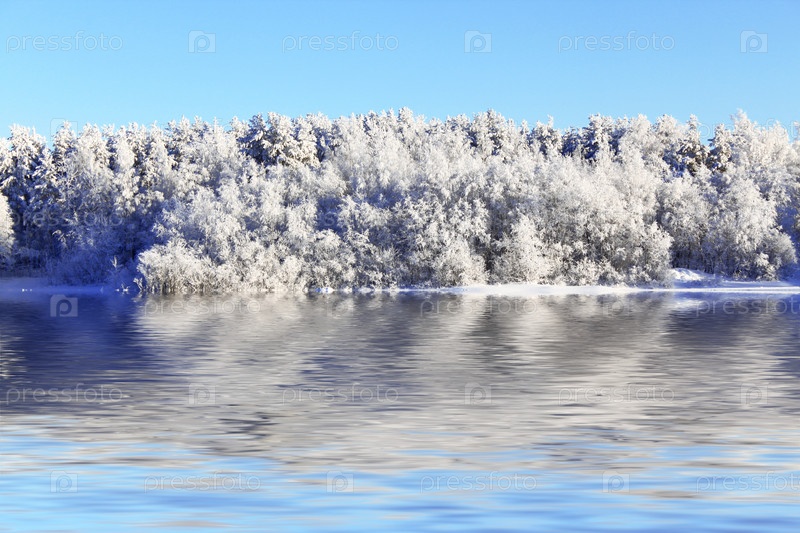 Зимний лес на берегу озера