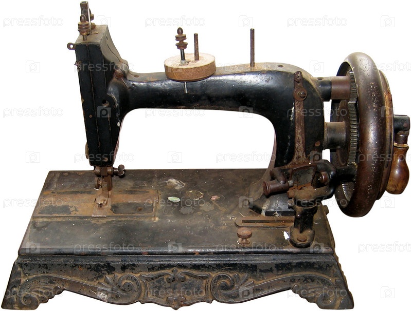 Старая швейная машинка на белом фоне