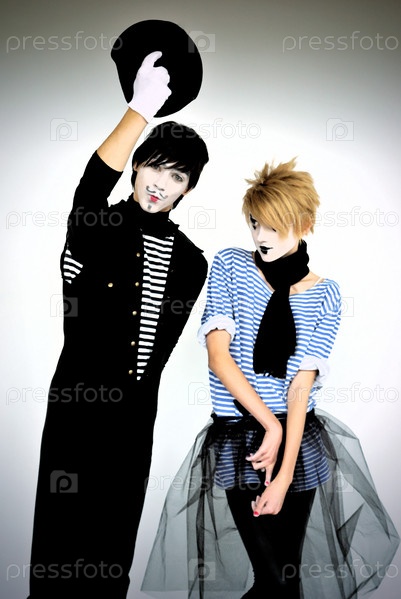 Актеры пантомимы на сером фоне