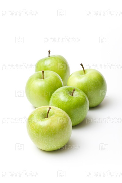 Зеленые яблоки на белом фоне