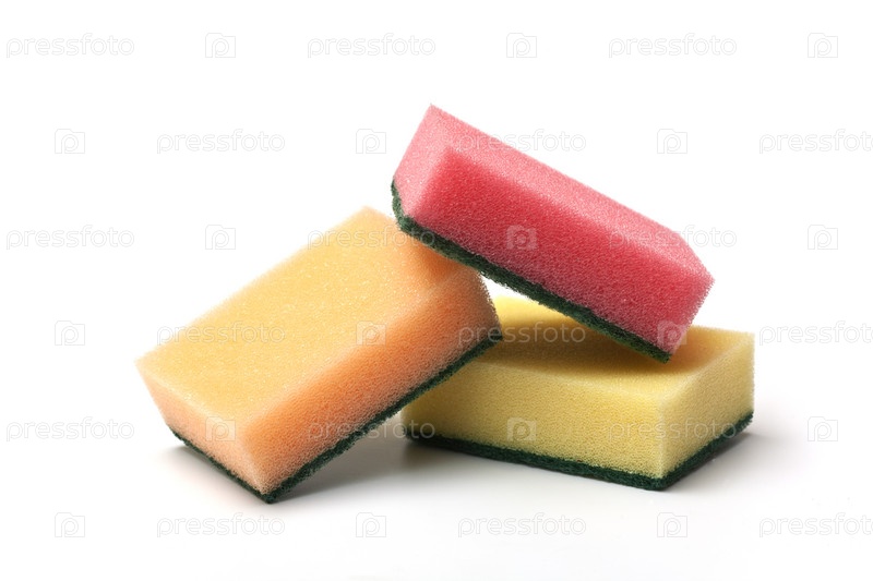 Губки для мытья посуды на белом фоне