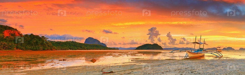 Традиционная филиппинская лодка банка на фоне заката