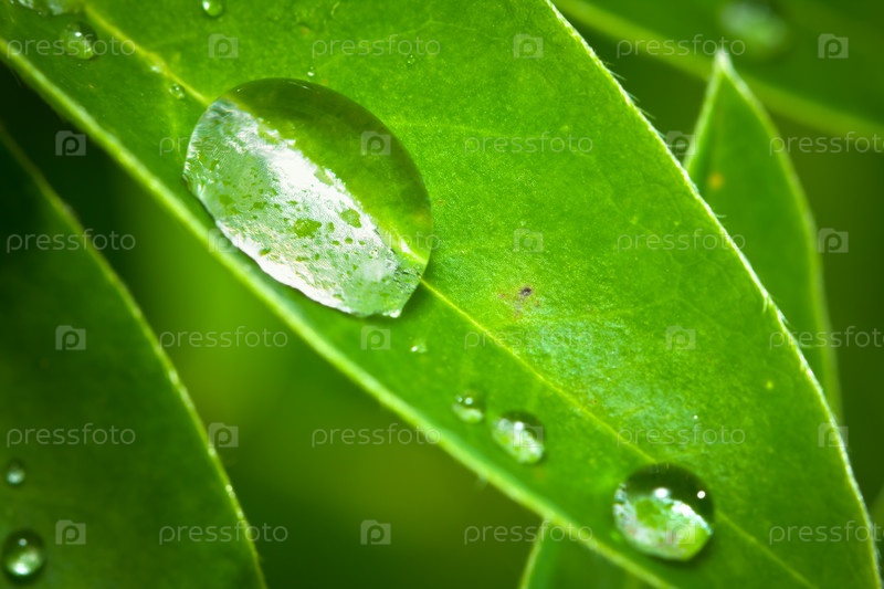 Капли воды на листьях люпина