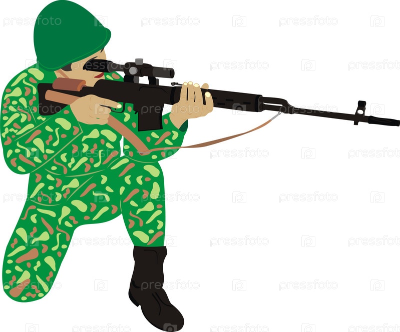 Солдат со снайперской винтовкой, изолированный на белом фоне