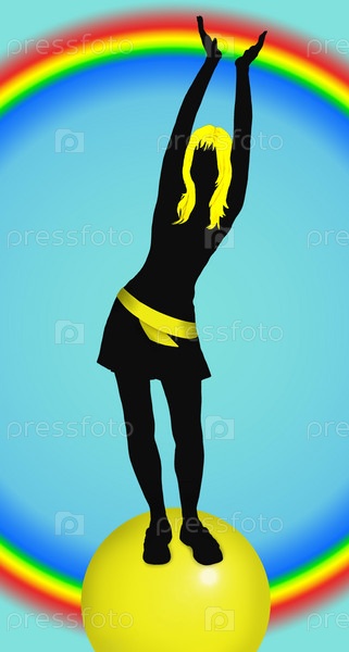 Силуэт молодой девушки на желтой сфере