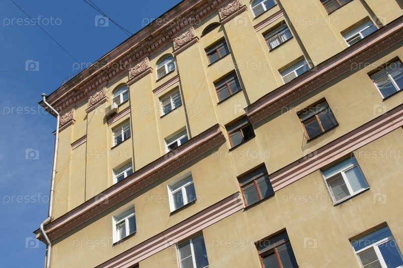 Фасад здания с окнами на фоне неба