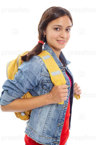 Довольная ученица с рюкзаком