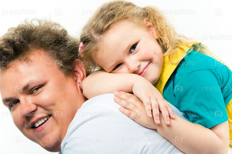 Портрет маленькой очаровательной девочки, лежащей над папой