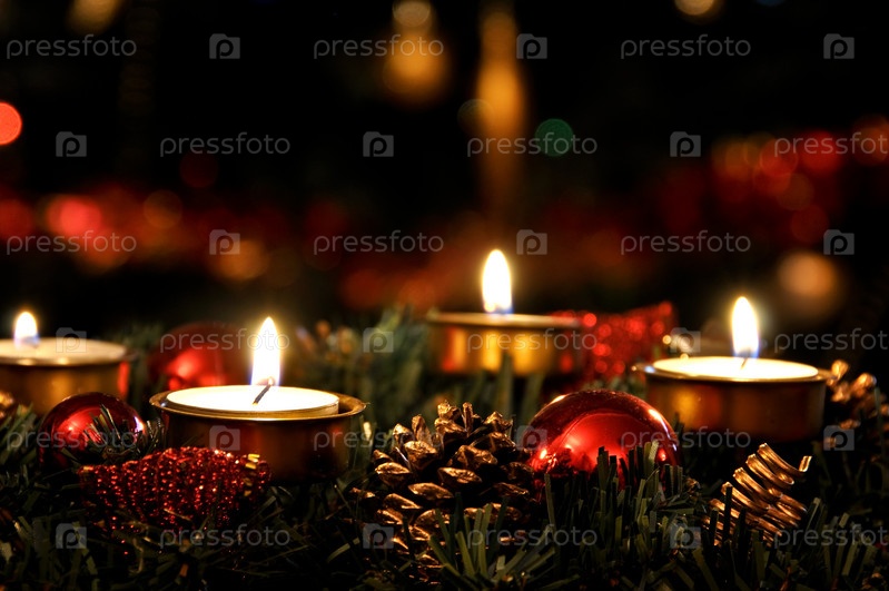 Новогодние украшения с горящими свечами
