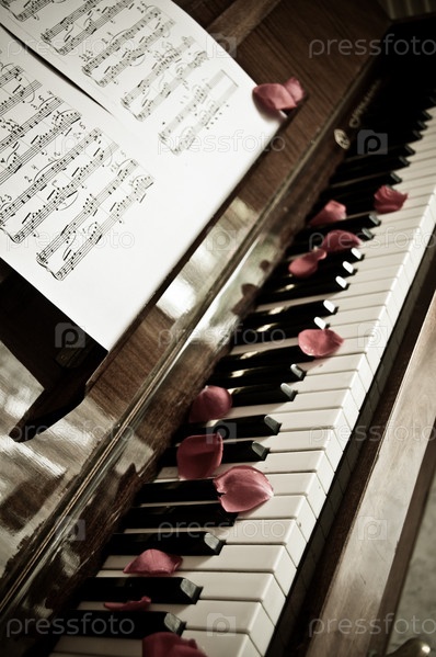 Пианино с лепестками роз