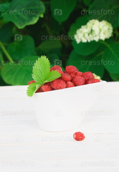Дикая земляника в миске на столе